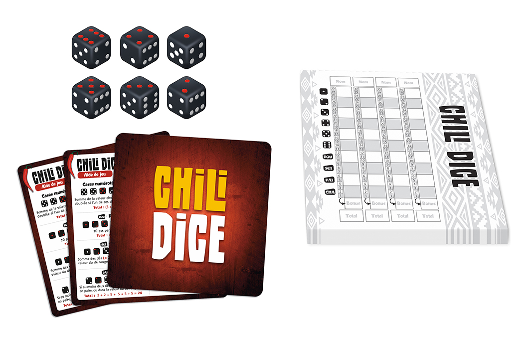 30 lancers de dés et 10 cases à remplir. Utilisez vos dés rouges pour marquer des bonus ou tournez-les sur la face de votre choix. Lancez et relancez autant que vous voulez : à  vous de fixer vos propres limites !
