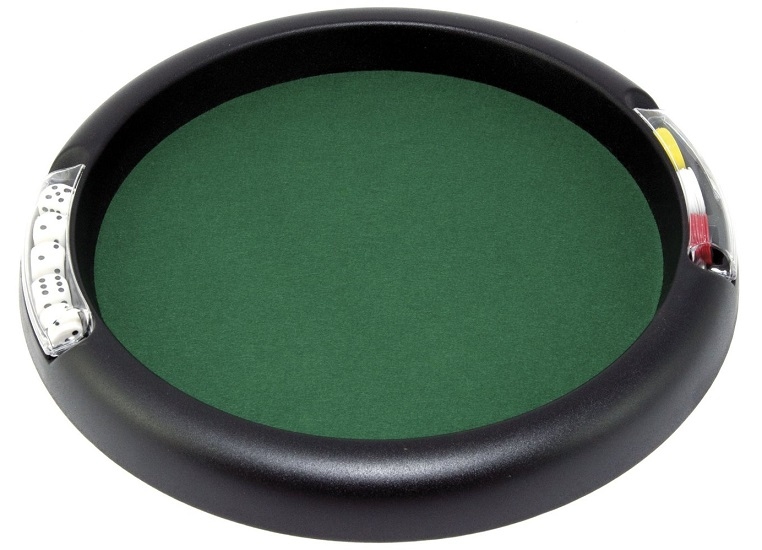 Garnie d’une feutrine de couleur verte, cette piste de dés aux bords noirs vous permettra de retrouver les plaisirs d’une partie de Yam’s ou de 421 ou de Zanzi comme si vous étiez au comptoir de votre café du coin.